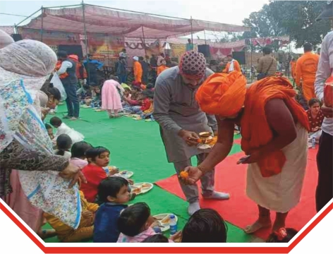 "Guruji selflessly distributes food and clothes to needy families, ensuring no one sleeps hungry or suffers from lack of essentials. He believes serving the underprivileged is the highest form of humanity. Through these acts of kindness, Guruji brings comfort, dignity, and warmth to countless lives."